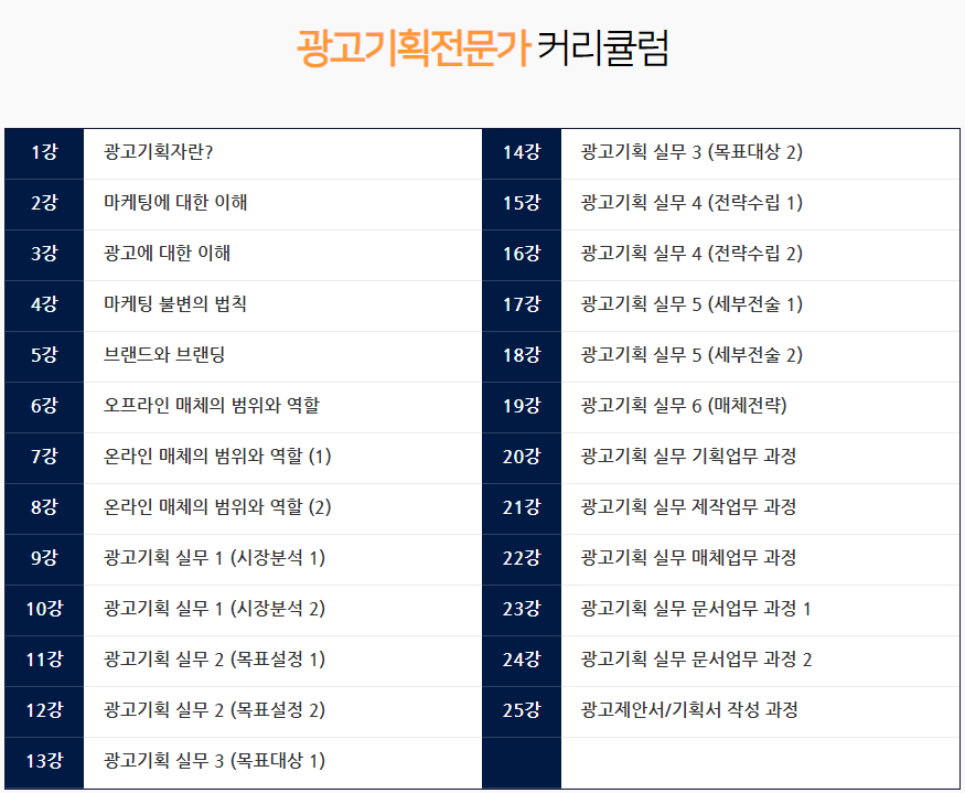 광고기획전문가 양성하는 직무를 수행하는